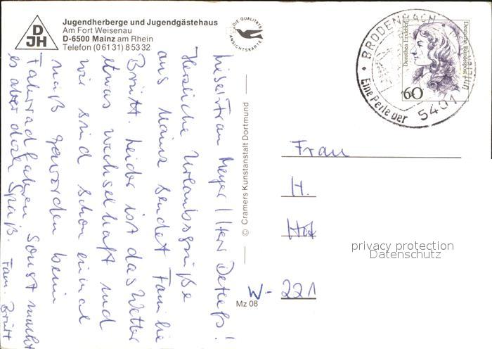 72577635 alte Postkarte Mainz Rhein Jugendherberge und Jugendgaestehaus postalisch gelaufen Erhaltung siehe scans [FriedD77] KatCode: 11110007315000