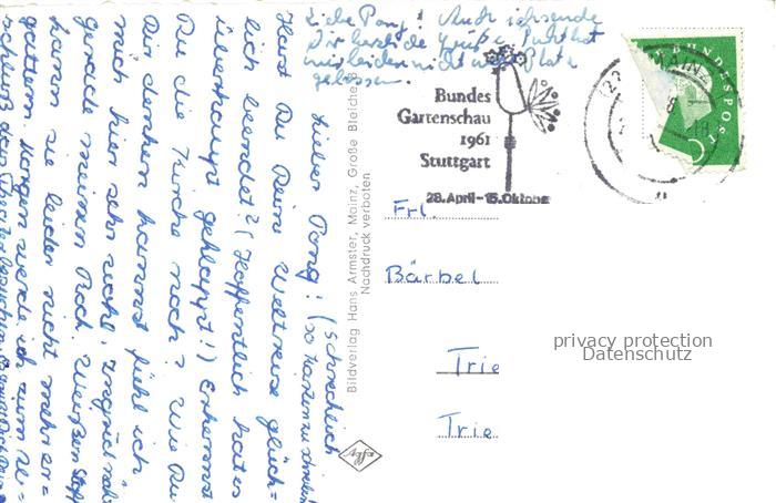 74087843 alte Postkarte MAINZ Rhein Kaiserstrasse mit Christuskirche Wasserspiele postalisch gelaufen Erhaltung siehe scans [FriedD77] KatCode: 11110007315000