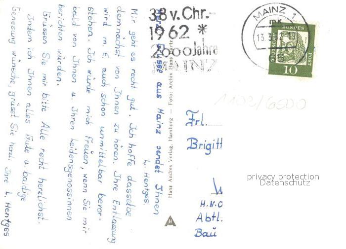 73283868 alte Postkarte Mainz Rhein Leichhof Thetater Dom Schloss postalisch gelaufen Erhaltung siehe scans [NatalD47] KatCode: 11110007315000
