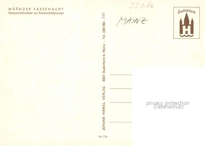 73865302 Mainz Rhein Maeaenzer Fassenacht Fastnachtstreiben am Fastnachtsbrunnen postalisch nicht gelaufen Erhaltung siehe scans [FriedD77] KatCode: 11110007315000