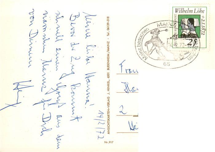 73896379 alte Postkarte Mainz Rhein Maeaenzer Fassenacht Umzug Blick ueber den Rhein Fahrgastschiff postalisch gelaufen Erhaltung siehe scans [FriedD77] KatCode: 11110007315000