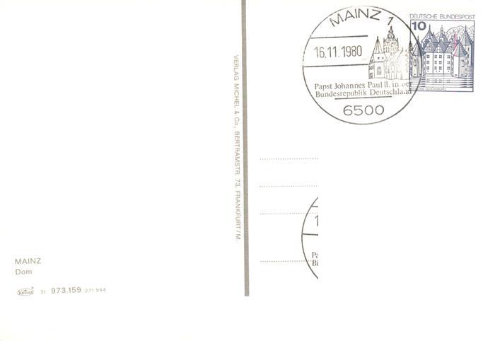 73908002 alte Postkarte Mainz Rhein Mainzer Dom Papstbesuch 1980 postalisch gelaufen Erhaltung siehe scans [WerneD78] KatCode: 11110007315000