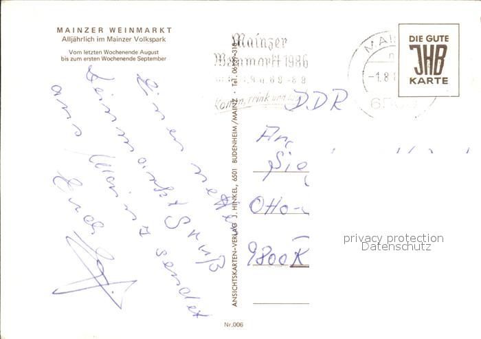72447759 alte Postkarte Mainz Rhein Mainzer-Weinmarkt postalisch gelaufen Erhaltung siehe scans KatCode: 11110007315000