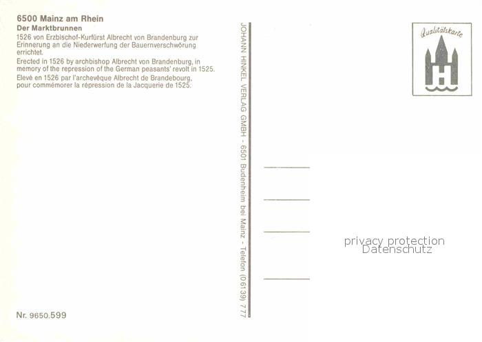 72750510 Mainz Rhein Marktbrunnen postalisch nicht gelaufen Erhaltung siehe scans [LiesaD40] KatCode: 11110007315000