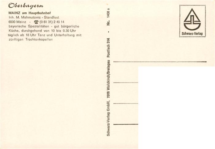 73875636 Mainz Rhein Oberbayern Mainz am Hauptbahnhof Gastraeume Trachtenkapelle postalisch nicht gelaufen Erhaltung siehe scans [WerneD78] KatCode: 11110007315000