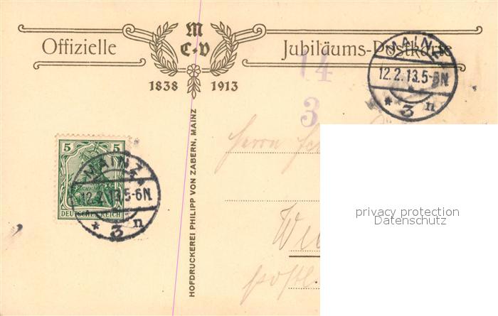 33549730 alte Postkarte Mainz Rhein Offizielle Jubilaeumspostkarte Mainzer Karnevalverein 1838 – 1913 Kuenstlerkarte postalisch gelaufen Erhaltung siehe scans [FriedD77] KatCode: 11110007315000