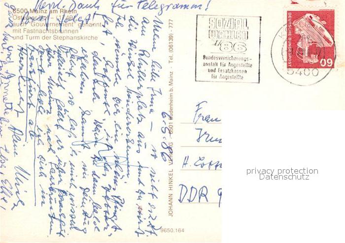 72981599 alte Postkarte Mainz Rhein Osteiner-Hof postalisch gelaufen Erhaltung siehe scans [LiesaD40] KatCode: 11110007315000