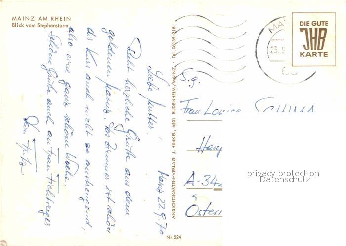 72692968 alte Postkarte Mainz Rhein Panorama Blick vom Stephansturm Altstadt Dom postalisch gelaufen Erhaltung siehe scans [FriedD77] KatCode: 11110007315000