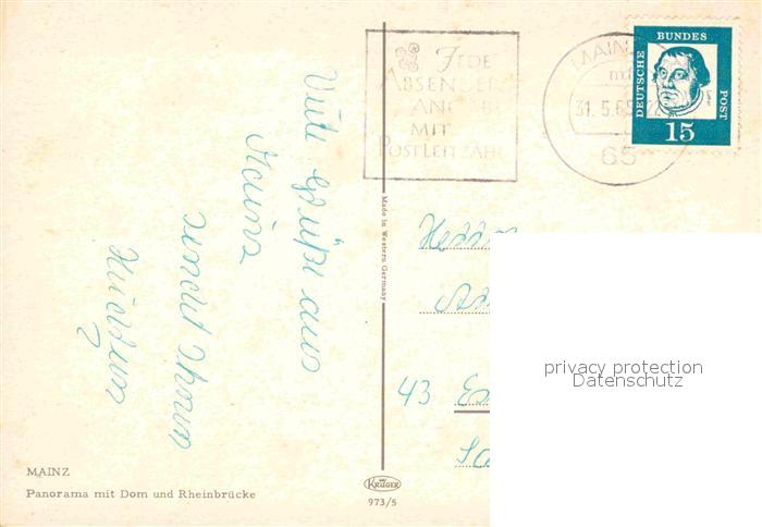 72745900 alte Postkarte Mainz Rhein Panorama mit Dom und Rheinbruecke postalisch gelaufen Erhaltung siehe scans [FriedD77] KatCode: 11110007315000