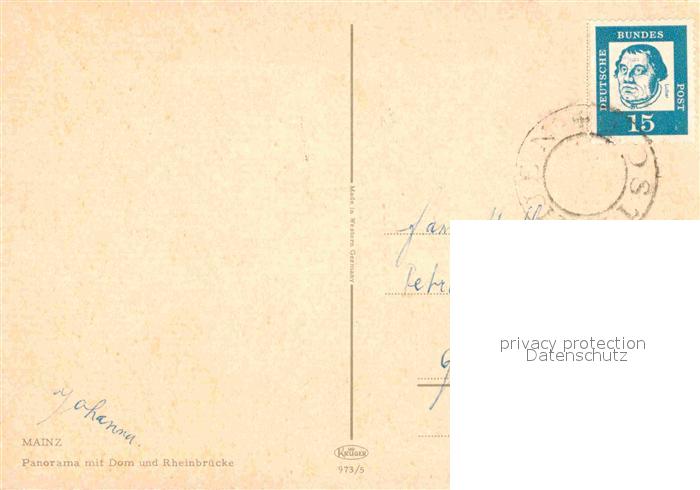 72772832 alte Postkarte Mainz Rhein Panorama mit Dom und Rheinbruecke postalisch gelaufen Erhaltung siehe scans [WerneD78] KatCode: 11110007315000