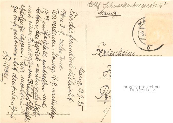 73551272 alte Postkarte Mainz Rhein Panorama Zeichnung postalisch gelaufen Erhaltung siehe scans [WerneD78] KatCode: 11110007315000