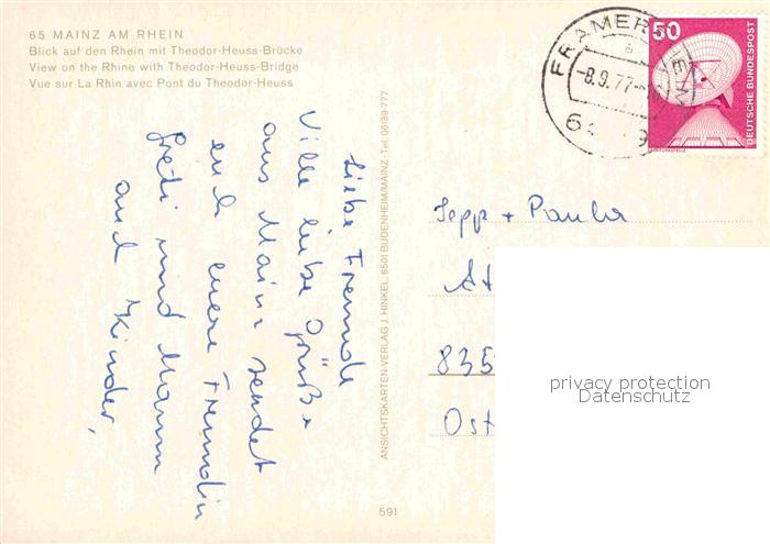 72724907 alte Postkarte Mainz Rhein Rheinpartie mit Theodor-Heuss-Bruecke postalisch gelaufen Erhaltung siehe scans [LiesaD40] KatCode: 11110007315000