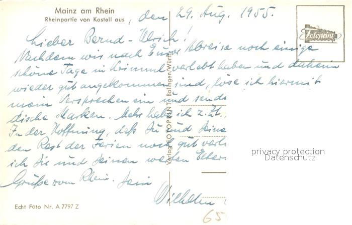73140530 Mainz Rhein Rheinpartie von Kastell aus postalisch nicht gelaufen Erhaltung siehe scans [FriedD77] KatCode: 11110007315000