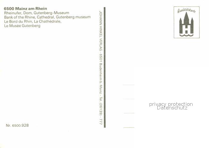 72739721 Mainz Rhein Rheinufer Dom Gutenberg-Museum postalisch nicht gelaufen Erhaltung siehe scans [LiesaD40] KatCode: 11110007315000