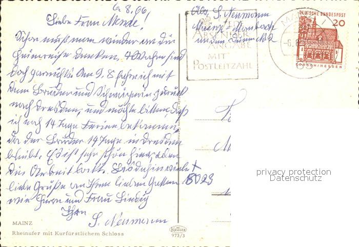 72354786 alte Postkarte Mainz Rhein Rheinufer Frachtschiffe Kurfuerstliches Schloss postalisch gelaufen Erhaltung siehe scans KatCode: 11110007315000