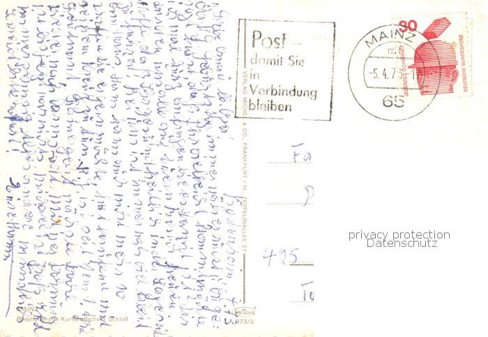 73813467 alte Postkarte Mainz Rhein Rheinufer mit Kurfuerstlichem Schloss postalisch gelaufen Erhaltung siehe scans [WerneD78] KatCode: 11110007315000