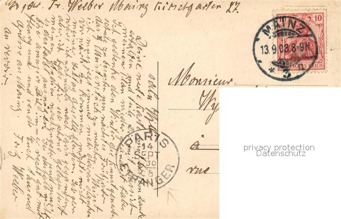73298076 alte Postkarte Mainz Rhein Schiller Denkmal Statue postalisch gelaufen Erhaltung siehe scans [FriedD77] KatCode: 11110007315000