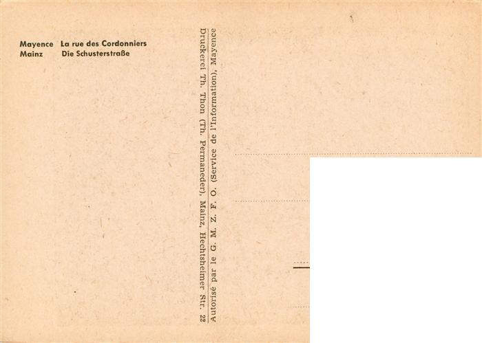 73879547 Mainz Rhein Schusterstrasse Kuenstlerkarte postalisch nicht gelaufen Erhaltung siehe scans [FriedD77] KatCode: 11110007315000