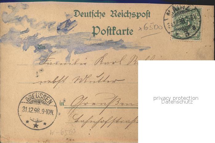 41782124 alte Postkarte Mainz Rhein Stadtbild mit Dom Gutenberg Denkmal Neujahrskarte postalisch gelaufen KatCode: 11110007315000