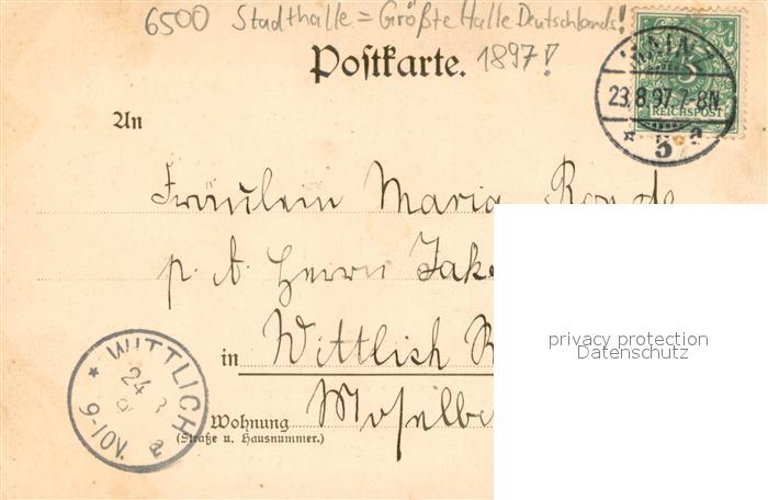 73691213 alte Postkarte Mainz Rhein Stadthalle postalisch gelaufen Erhaltung siehe scans [WerneD78] KatCode: 11110007315000