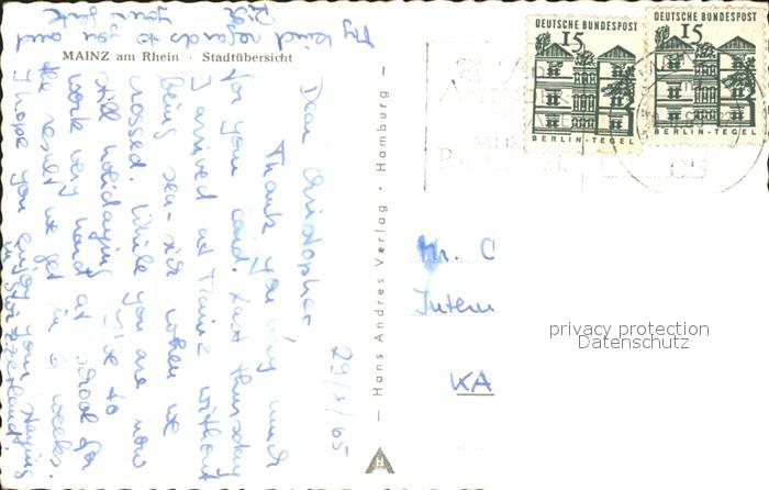 72074753 alte Postkarte Mainz Rhein Stadtuebersicht Kirche Rheinbruecke postalisch gelaufen Erhaltung siehe scans KatCode: 11110007315000