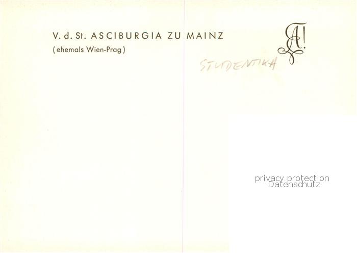 73853657 Mainz Rhein Studentenvereinigung Asciburgia zu Mainz Wappen postalisch nicht gelaufen Erhaltung siehe scans [WerneD78] KatCode: 11110007315000