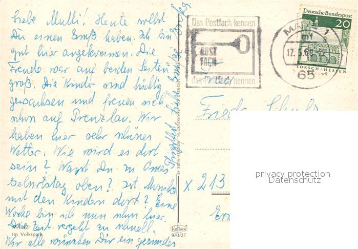 72974082 alte Postkarte Mainz Rhein Volkspark postalisch gelaufen Erhaltung siehe scans [PaolaD17] KatCode: 11110007315000