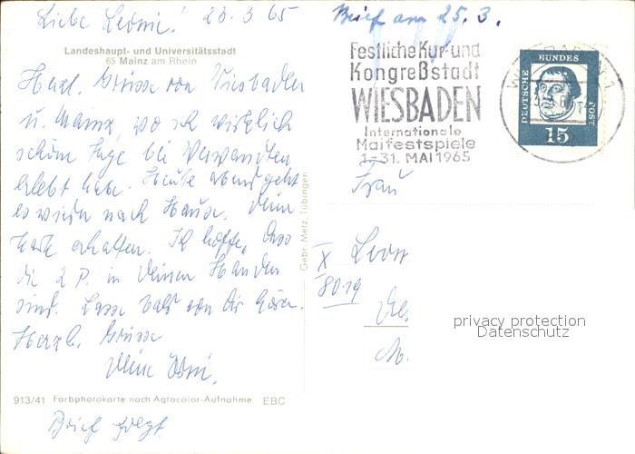 72393779 alte Postkarte Mainz Rhein Vom Rhein aus gesehen postalisch gelaufen Erhaltung siehe scans KatCode: 11110007315000