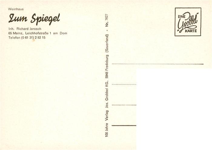 73875499 Mainz Rhein Weinhaus Zum Spiegel Mainz Altstadt Gastraeume postalisch nicht gelaufen Erhaltung siehe scans [WerneD78] KatCode: 11110007315000
