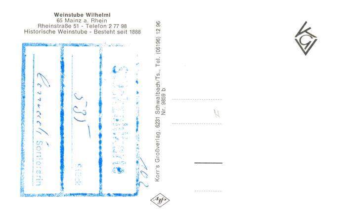 73898851 Mainz Rhein Weinstube Wilhelmi Stempel Stueckzahlkarte postalisch nicht gelaufen Erhaltung siehe scans [FriedD77] KatCode: 11110007315000