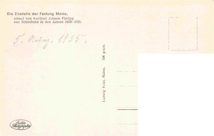 73972512 Mainz Rhein Zitadelle Institut fuer Voelkerpaedagogik postalisch nicht gelaufen Erhaltung siehe scans [FriedD77] KatCode: 11110007315000
