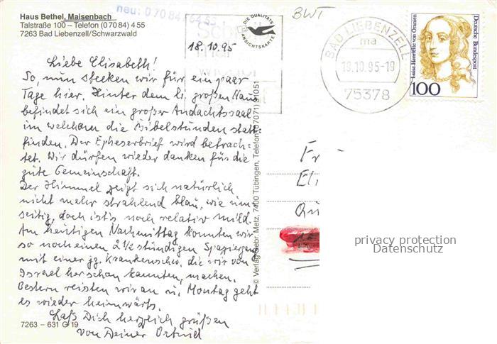 74045352 alte Postkarte Maisenbach Haus Bethel postalisch gelaufen Erhaltung siehe scans [FriedD77] KatCode: 11110008235008