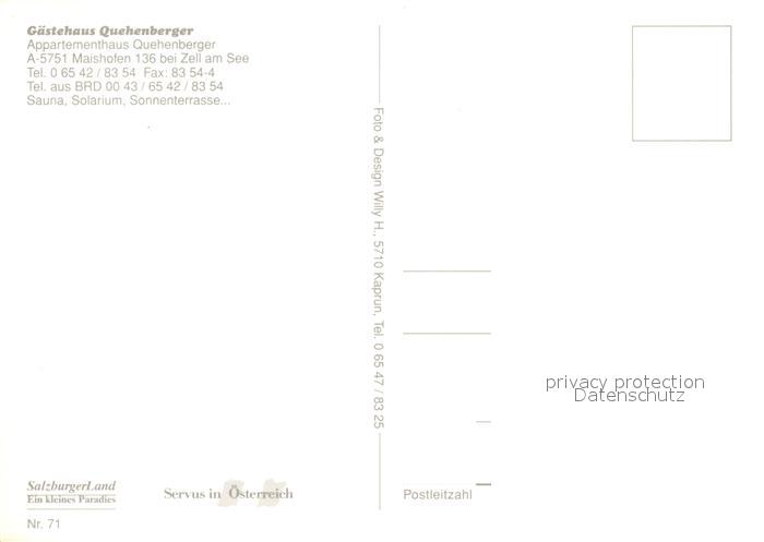 13215575 Maishofen Gaestehaus Quehenberger postalisch nicht gelaufen Erhaltung siehe scans [LiesaD40] KatCode: 11390322050611