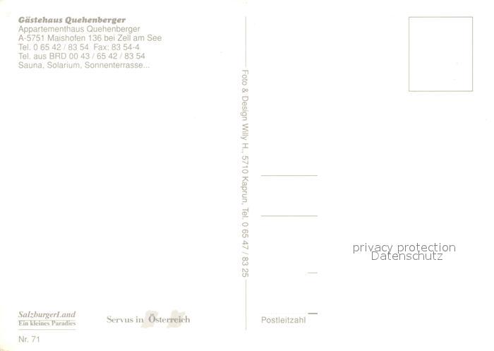73219167 Maishofen Gaestehaus Quehenberger Alpen postalisch nicht gelaufen Erhaltung siehe scans [FriedD77] KatCode: 11390322050611