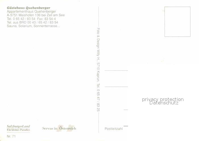 72827058 Maishofen Gaestehaus Quehenberger Appartementhaus Alpenblick postalisch nicht gelaufen Erhaltung siehe scans [FriedD77] KatCode: 11390322050611