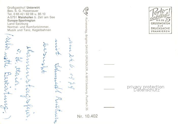 73054544 Maishofen Grossgasthof Unterwirt Panoramen postalisch nicht gelaufen Erhaltung siehe scans [KathaD81] KatCode: 11390322050611