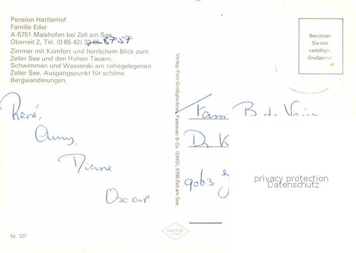 72824831 alte Postkarte Maishofen Pension Hettlerhof postalisch gelaufen Erhaltung siehe scans [LiesaD40] KatCode: 11390322050611