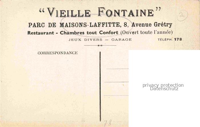 14108486 Maisons-Laffitte Saint-Germain-en-Laye 78 Yvelines Hôtel Vieille Fontaine au parc postalisch nicht gelaufen Erhaltung siehe scans [FriedD77] Frie Katcode 11170078378358
