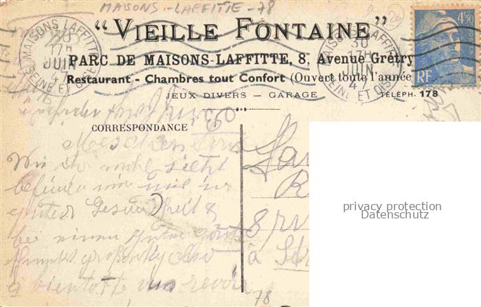 14108487 Maisons-Laffitte Saint-Germain-en-Laye 78 Yvelines Hôtel Vieille Fontaine au parc postalisch gelaufen Erhaltung siehe scans [FriedD77] carte postale Frie Katcode 11170078378358