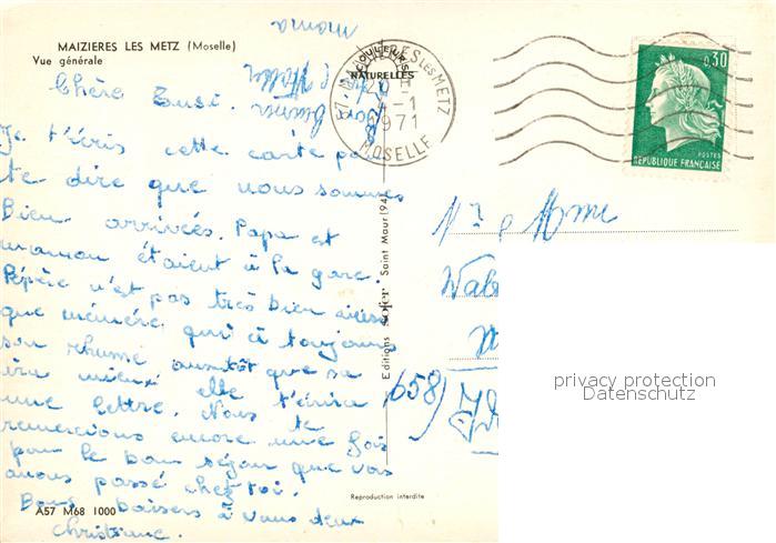 13043980 carte postale Maizieres-les-Metz Fliegeraufnahme postalisch gelaufen Erhaltung siehe scans [KathaD81] KatCode: 11170057457433