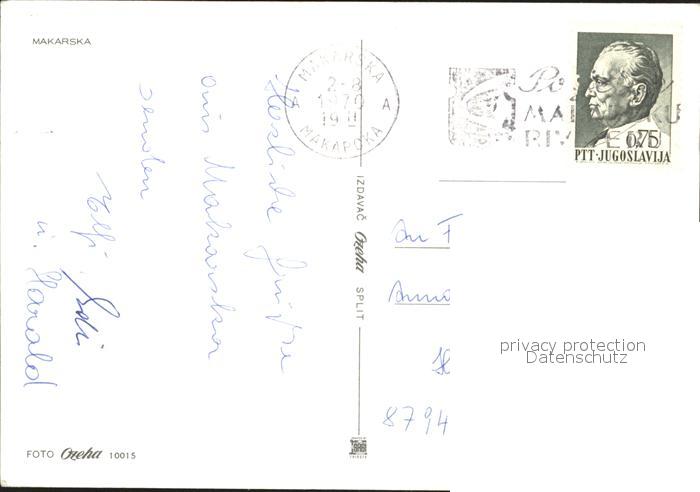 old postcard Makarska Dalmatien Fliegeraufnahme postalisch gelaufen Erhaltung siehe scans
