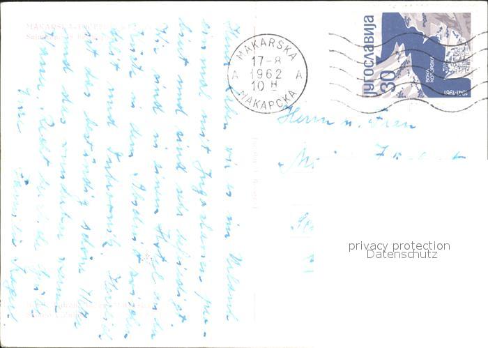 old postcard Makarska Dalmatien Fliegeraufnahme postalisch gelaufen Erhaltung siehe scans