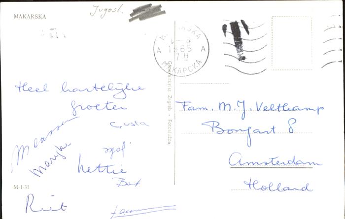old postcard Makarska Dalmatien Panorama Pier Kirche Strand postalisch gelaufen gute Erhaltung