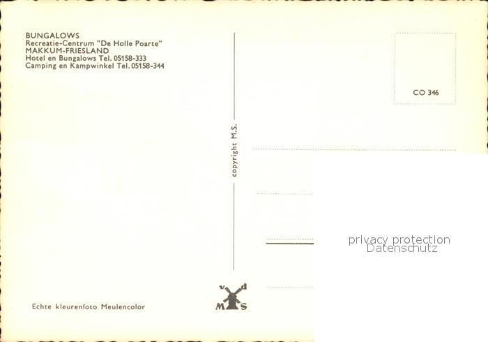 Makkum Bungalows Recreatiecentrum De Holle Poarte postalisch nicht gelaufen Erhaltung siehe scans