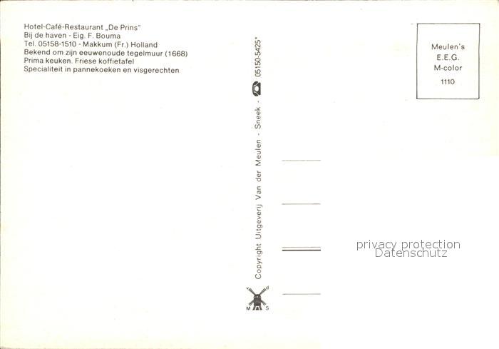 Makkum Hotel Cafe Restaurant De Prins postalisch nicht gelaufen Erhaltung siehe scans