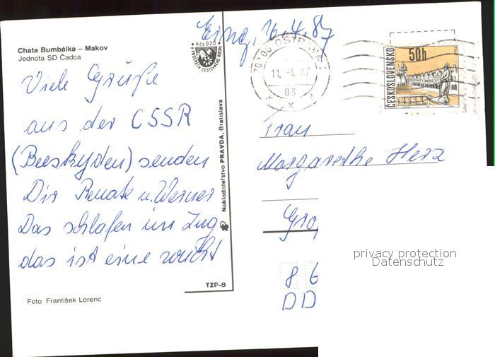 old postcard Makov Chata Bumbalka postalisch gelaufen Erhaltung siehe scans