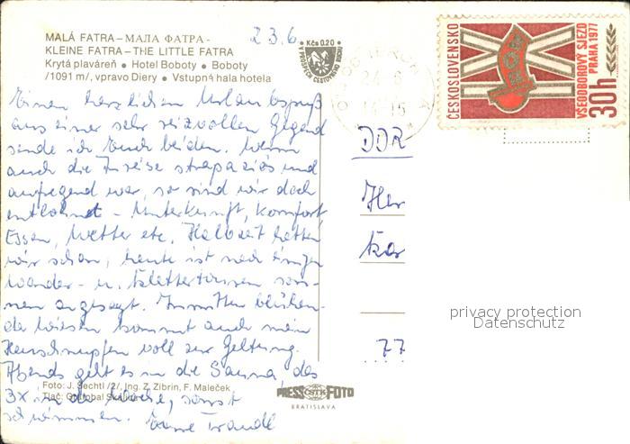 Mala Fatra Hotel Boboty Hallenbad Gastraum postalisch nicht gelaufen Erhaltung siehe scans
