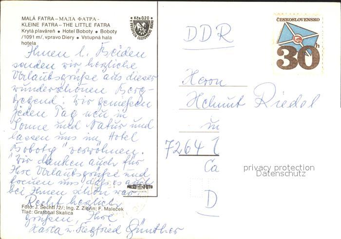 old postcard Mala Fatra Hotel Boboty Kleine Tatra Hallenbad Landschaft Gebirge postalisch gelaufen Erhaltung siehe scans