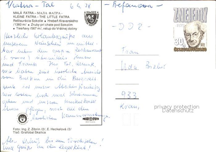 old postcard Mala Fatra Restaurant Sokolie postalisch gelaufen Erhaltung siehe scans