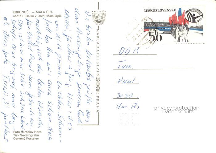old postcard Mala Upa Krkonose Chata Rusalka postalisch gelaufen Erhaltung siehe scans [LiesaD40]